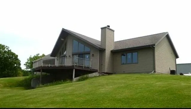 Ridge top home in a park-like setting. Amazing long-distance views from every window - surrounded by 61 acres of Wisconsin's spectacular countryside. Breathtaking sunsets are yours each evening from the large great room and spacious deck.