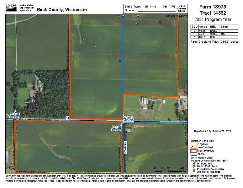 information is per AgriData Inc. Surety Maps & Rock County FSA. Each tract will be sold based on the total