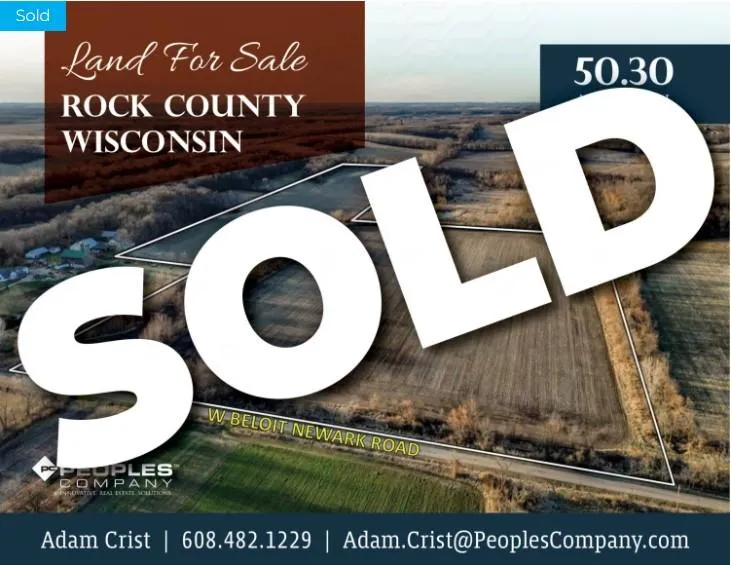 Peoples Company is pleased to present 50.30 acres m/l in Rock County, Wisconsin. Located five miles south of Brodhead, Wisconsin, and just one mile east of the Green/Rock County line. The farm consists of 43.16 FSA-certified cropland acres with Marshan Loam and Billet Sandy Loam being the primary soils types. The row crop lease on this farm runs through the 2023 growing season and brings in a handsome income of nearly $8,000 yearly. The current tenant has been operating this farm since 2004 and would be willing to continue leasing the property. This property presents multiple buildings sites and exceptional hunting opportunities for the avid outdoorsman and whitetail hunter. This land would make for a great add-on unit to an existing farm operation or a premium investment-grade land purchase.