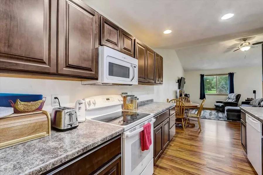 Pristine condition & only 6 years new! Great opportunity to own your own home! Like new & move in ready! Great open layout, featuring cathedral ceilings. Fully applianced kitchen, with an abundance of cabinetry, leading to private deck. Primary bedroom includes private bath. Finished basement provides for additional entertaining space, plus room to expand, including rough-in for bath & plenty of storage space. Main level laundry & 2 car garage. No condo fees! Just a 30 minute drive to Madison.