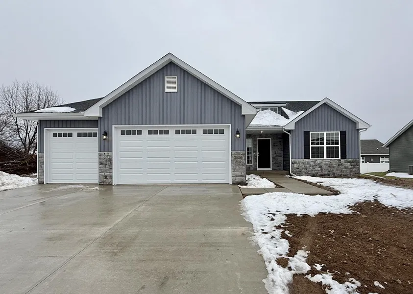 Beautiful three bedroom, two bathroom ranch offering 1,852 square feet of thoughtfully designed living space. The open concept great room features a tray ceiling and flows seamlessly into the kitchen, which includes a breakfast bar island, large walk in pantry, and ample cabinetry. The primary suite offers a walk in closet and private bath with double vanity. Enjoy a covered front porch, a composite deck in the backyard and a spacious three car garage. The basement features 9 foot ceilings, an egress window, and is stubbed for an additional bathroom, providing excellent potential for future finishing.