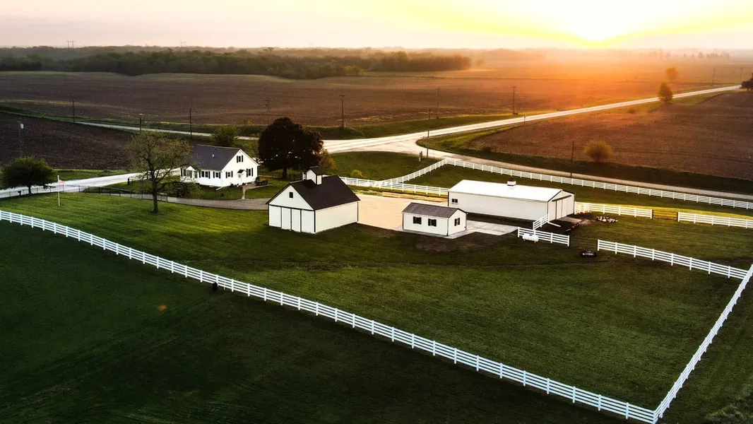 The home also features steel roofing and vinyl siding for minimal maintenance. All new black, steel fencing and white, vinyl fencing (2023). New blacktop asphalt and concrete apron for outbuildings, as well as LiftMaster gate opener with video conference, for the driveway entrance. Private deep well (~275'). Outbuildings include a 30'x54' steel equine barn with concrete alleyway and 4 box stalls, and an enclosed tack room. Also, a 16'x25' heated workshop with concrete floor, and a 28'x32' corn crib with steel siding and roof.