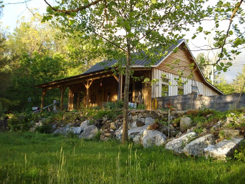 Located at the end of a lane on 30 acres with a National Forest boundary, this property is exceptional both in the land and the quality of craftsmanship. The handcrafted cabin overlooks Mill Creek, a wonderful stocked trout stream, which traverses the property for 1000s of feet. New guest quarters and a workshop sit amidst organic gardens and fields.