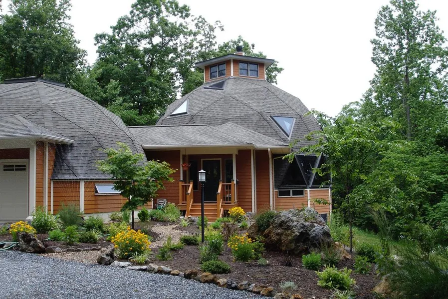 The creative, energy efficient Natural Spaces Dome sits along a ridge offering unspoiled views of Taylor Hollow and the western slopes of the Blue Ridge Mountains. Comfortably designed with living space on three floors and an observation room in the cupola. 3 bedrooms, 3 full baths, open living room, office and kitchen area. 36 private acres convenient to Lexington, Staunton, and Charlottesville, VA.