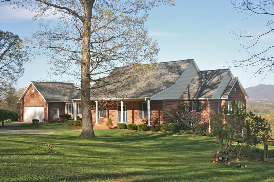 Enjoy beautiful sunrise over the majestic Blue Ridge Mountains from this custom built brick home. The long driveway winds to the private elevated homesite against large oak trees with breath taking views of the mountains and valley below. The farm has plenty of pasture for livestock, as well as woods for wildlife.