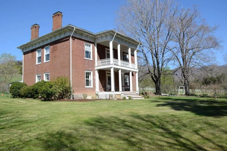 Mountain and valley views. Quiet country road. Fine farmland for crops or grazing. Home of exceptional architectural character. This property has so much going for it, plus potential! Situated on the 13.7 Alphin dower tract, the historic William Alphin House was built ca. 1856 for one of the county's leading merchant farmers. The substantial solid brick Greek Revival/Italian Villa-style dwelling with 5 large bedrooms and 2.5 baths is an impressive area landmark and a comfortable home. Gently sloping, fenced land for livestock is also suited for cultivation. Multi-purpose Barn includes several box stalls and a 4-car Garage. The purchaser of this property also has the opportunity to obtain some or all of the adjoining 200+ unrestricted acres at additional cost (for details, please inquire).