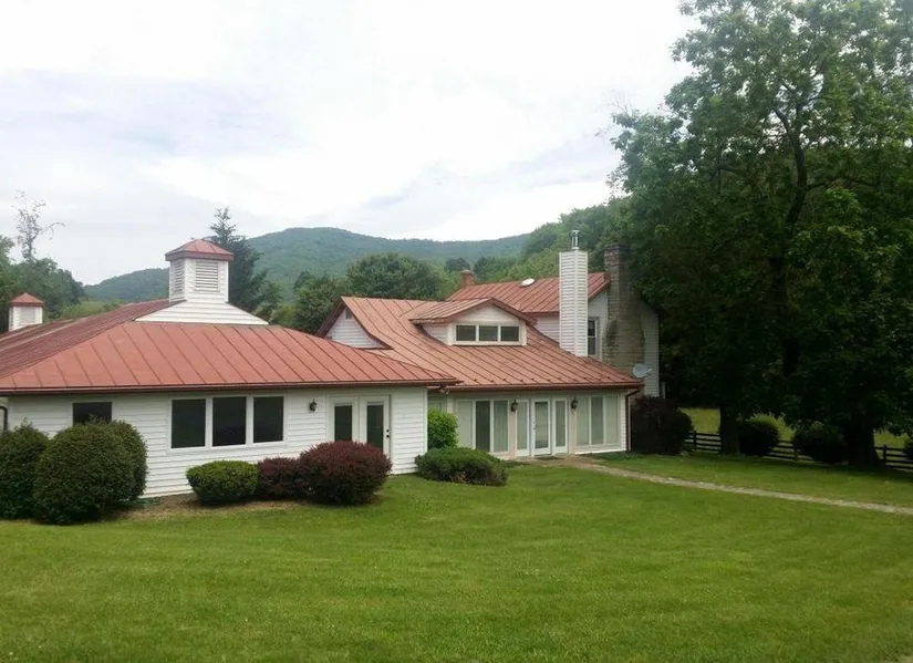 Exceptional country property near Lexington. 4 BR, 3 1/2 BA, large kitchen, and formal dining room and den. 160 acres of fields, woods, and long creek frontage. Traditional farm house connected to an addition which houses an Olympic-sized lap pool. Enjoy hunting, walking, or trail riding throughout the woods -- fish, wade, splash about in the bold Buffalo Creek. Barn, outbuilding.