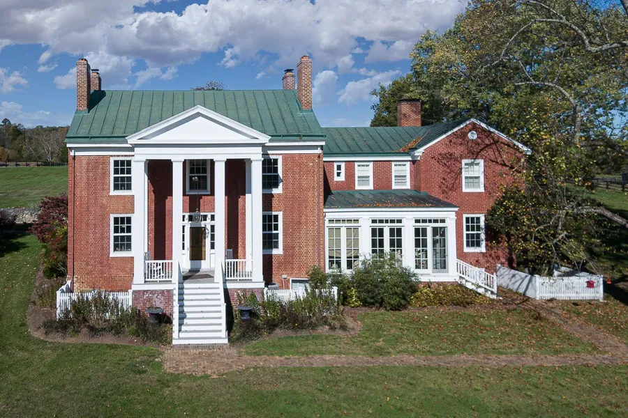 A stunning period brick home of magnificent quality, both in architecture & its environs, set amidst 185+/- acres. A private setting, reached by an inviting tree-lined drive, which passes pastures, a stable, gentle brook, stone spring house, gardens, massive oak trees & leads to the handsome columned house. The 4 bedrooms, 4.5 bath home is beautifully restored & updated. Comfortable living areas: Sunroom to the Drawing Room, to the beautiful Eat-in Kitchen, to a lovely Dining Room, and then up to the wonderful bedrooms. Gardens, handsome stonework, a 1 bed, 1 bath Guest Cabin, and outdoor sitting areas lead to views of the grounds & Blue Ridge Mountains. The land is well fenced & watered, & currently is home to sheep & cattle. It would be equally well suited to horses, & lovers of beauty.