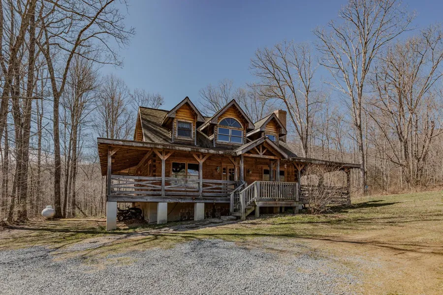 Situated on almost 21 acres of mature forest with long stretch of S. Buffalo Creek, this recently constructed log home offers the ultimate secluded mountain setting at the end of a state-maintained road in southern Rockbridge County. Post and beam, 3-bedroom log home offers hand-hewn pine beams and timbers, custom cherry cabinets, first floor master suite, and hardwood floors throughout. Large open great room features vaulted ceiling, Rumford wood burning fireplace, and wood stove. Wraparound porch is the ideal place to watch abundant wildlife and listen to the tranquility of rushing mountain spring water in S. Buffalo Creek and the additional spring-fed branches.