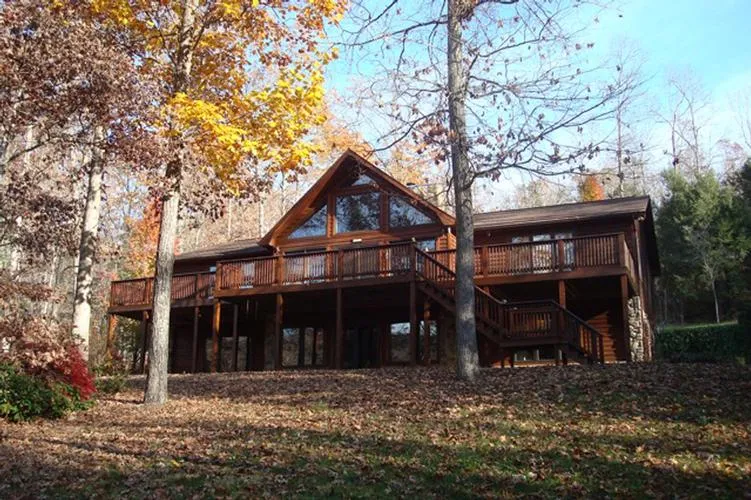Spacious contemporary with open floor plan in Rockbridge Baths. This home has four bedrooms with rustic cherry wood flooring and three baths with custom hickory cabinetry. The large great room area is anchored by a stone fireplace which provides an eye catching backdrop to the kitchen with custom hickory cabinets and granite counter tops. Large deck opposite extensive living room windows.