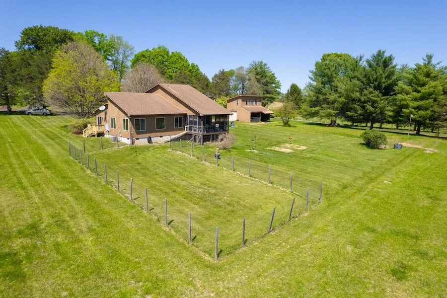 Idyllic Country Living Meets Modern Convenience - Ross Road Gem! Discover this rare opportunity to own a stunning contemporary home nestled on 3.6 acres of lush pasture, just minutes from the country club and downtown amenities. Built c. 2000, this is a passive solar energy efficient designed custom 3-bedroom, 2-bathroom residence offers 1,836 square feet of thoughtfully designed living space that blends style with tranquility. Enjoy morning coffee or evening breezes from the spacious screened-in, covered porch, perfect for relaxing or entertaining. The property includes a detached secondary dwelling with a finished studio above, ideal for a home office, guest suite, or creative retreat. Need extra space for hobbies or livestock?
