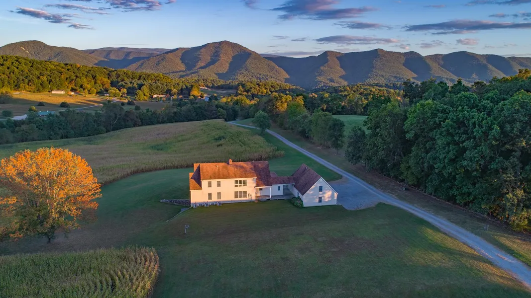 Shenandoah Valley Beauty! Situated on 35 acres north of Lexington, VA, this stunning Cape with 3 car garage enjoys gorgeous Blue Ridge Mountain views, rolling fields, a 30 x 50 heated shop building & an attached 27 x 36 garage for your hobbies or collections. Hickory floors, cherry cabinetry, custom staircase & trim enhance the large, open rooms & vaulted living room w/brick fireplace. Main level handicap access, sprinkler system. Sit on the covered front porch & appreciate your new home.