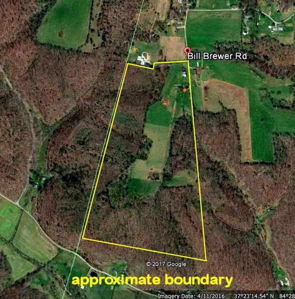58 acres with 22 acres of open land and the balance in woods. Some marketable timber. Located at end of Brewer Lane, has lots of privacy. In Rockcastle County which has no zoning. 3 ponds, a potable well, lots of deer and turkey. Only 3 miles off Ky Hwy 39. Selling by the boundary.
