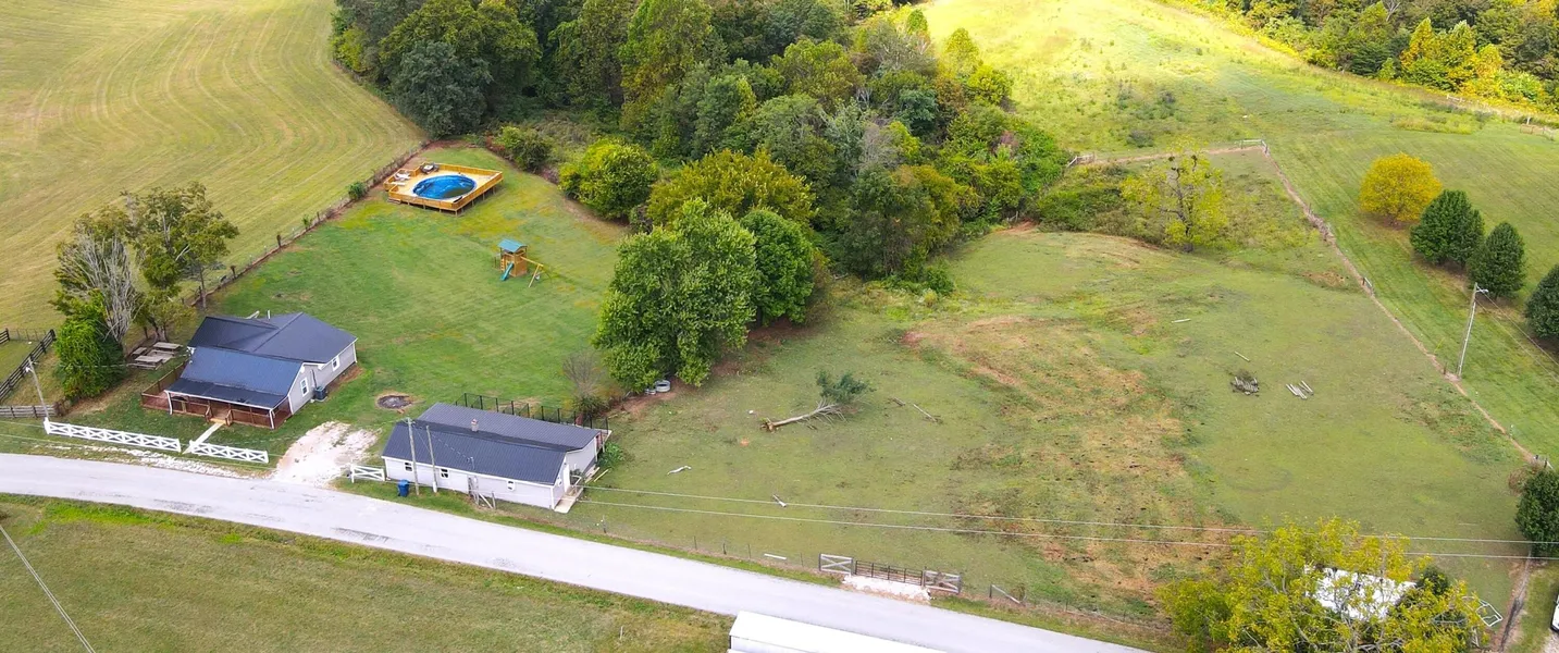 Nestled on a beautiful 3.6-acre setting in the Brindle Ridge area of Rockcastle County, this 3-bedroom, 1-bath home offers the perfect mix of country charm and modern convenience. Inside, you'll find a spacious living room, an eat-in kitchen with appliances to remain, and a utility area tucked neatly in the corner of the kitchen. The home is finished with laminate flooring throughout and is equipped with central heat and air for year-round comfort. The yard surrounding the home is simply breathtaking, offering great views of peaceful country living. Enjoy summer days in the 30 ft above-ground pool with a wraparound deck, or spend evenings at the custom firepit area featuring 4 swings, 4 chairs, and outdoor lighting. A large front porch, partially covered, provides another ideal spot to take in the scenery. The acreage is currently used for grazing horses and includes a hay shed with tack room. Additional improvements feature a 27x48 detached garage with multiple uses. Inside the building, there is a finished 355 sq. ft. room with a half bath, tile flooring, and gas heat-perfect for a studio apartment, office, or hobby space. Another section is set up as a dog kennel, while a separate area is currently used as a garage/workshop, adding even more functionality.