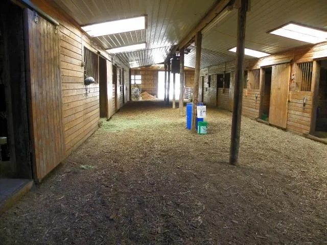 BelleGrace Stables, a successful equestrian center with 21 large box stalls,308 foot riding hall, indoor and outdoor round pens, tack and feed rooms, heated riders' lounge or possible manager's apartment,outdoor fenced arena and several paddocks on sixteen acres.Of these 16 acres, there are two subdividable house lots. There is frontage on a major road, easy access to the major highways or the seacoast.This farm has a lot of potential. The house is attached and has an office, living room, dining area, galley kitchen and two bedrooms. The large, mostly unfinished basement has another room used as a bedroom and can be finished off for more living space. The wood stove in the living room can heat the entire house. There is a fairly recently installed commercial size septic. The property lends itself well to some sort of agricultural/animal related business.