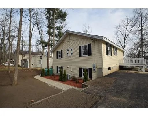Beautiful contemporary home with beach rights and a steps to Angle Pond! Completely renovated down to the studs and redone with a luxurious kitchen, hardwood flooring, a home office with a closet in the lower level with a 3/4 bath adjacent, this lovely home is like stepping in to a new home that is move-in ready! The modern kitchen boasts granite counter tops with island, with bright white shaker cabinets and brand new stainless steel appliances, including a 5-burner LP gas stove. Open concept living room with 2 bedrooms a full bath with laundry complete the main floor. The lower level is spacious boasting an over sized family room, office with closet and full size windows, an adjacent bathroom and walk sliders to a patio area. This home also offers a brand new heating system, tank-less water heater, whole-home generator, and central air conditioning . . . just in time for the hot weathe...