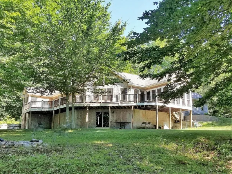 RETREAT AT KNOWLES FOREST Escape the real world & enter your own private realm, complete with 25 wooded acres laced w/ walking trails, lg frontage on a 30 AC beaver pond w/ abundant wildlife, a deck to relax on & a fireplace to warm you on wintry nights. An hour to Boston, half hour to the coast or 15 min to Manchester Airport. This well maintained custom, country contemporary offers a well thought out open concept floor plan & attention to detail. Entering the front door, you are greeted w/ an expansive dining & living room area w/ vaulted ceilings while outside a mahogany deck hugs the length of the house and looks out over the pond. The kitchen has ample red birch cabinetry and counter space & just off it is the laundry room w/ utility sink and a handy mudroom & access to the garage. The master suite w/ full bath & whirlpool tub & a second bedroom, and a bath are off the living room...