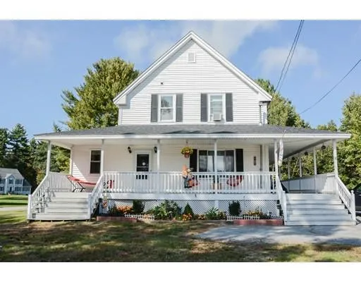 Charming antique colonial with a welcoming wrap around farmers porch located on a convenient corner lot. The first floor boasts an updated kitchen with quartz counter tops and stainless appliances, a flexible floor plan, laundry room, living room with pellet stove, and a full bath with soaking tub and walk in shower. All three second floor bedrooms have wide pine floors and high ceilings - the master bedroom has a walk in closet and full bath. This is an excellent commuter location!! Motivated seller, quick close possible.