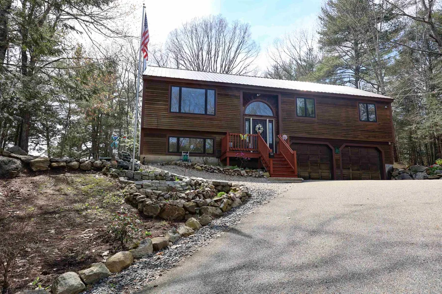 Welcome to this lovely raised ranch nestled on 2.35 acres off a quiet street and with nearby access to the Sandown Town Forest trail system. The home has been well cared for by its current and past owners and has had many upgrades, such as roof, windows, water filtration and radon mitigation system. There are established gardens, firepit and walking trails to enjoy the outdoors. Inside, you will be invited by a spacious living room with cathedral ceilings, large kitchen/ dining area that opens out to a beautiful deck and level backyard for entertaining. The main floor has 3 bedrooms, a full bath with laundry area and the primary bedroom with a private bathroom. The partially finished basement affords many opportunities for extra living space, office, entertainment area and has additional storage. Stay cozy by the woodstove or venture out to the large HEATED 2-car garage on those chilly New England winters. The home offers Central AC for these hot summer days with ceiling fans in living room, kitchen, and primary bedroom. There is a partially built shed the owner did not have time to complete, so it's ready for your finishing touches.