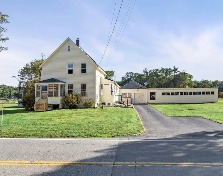 Looking for a Farmhouse in the country? Welcome to this renovated New England Colonial with almost an acre of land! A very nicely maintained home that offers an open concept floor plan along with many updates. The first floor has a welcoming side porch, a large oversized country kitchen, dining room, sunny living room, flex room and 3/4 bath. There are two bedrooms and another full bath on the 2nd living level. The adjoining building has a TON of space: unfinished storage room that measures 1,468 sq.ft. (could work as garage space as well), an oversized one car garage w/new garage door and two more areas that are unfinished. Looking to keep the electric bill low? - Solar panels allow for that reduced rate. Enjoy evenings by the fire pit and the beautiful pool in season. This property is located on a nice level lot with an above ground pool and is close to all major commuter routes, shopp...
