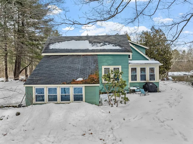Live Free in NH in this full dormered Charming Craftsman Cape with flexible floor plan and character throughout featuring 1st floor with welcoming breezeway, lovely eat-in kitchen with plenty of cabinets, light and bright formal dining room with coffered ceiling and cork flooring open to spacious living room with crown molding and cork flooring, 1st floor full bathroom, office with tongue and groove pine and French doors with glass knobs, fantastic family room, and sunroom with vaulted ceiling and tile floor. The 2nd floor with wood-look laminate flooring throughout includes great primary bedroom with two closets and built-in drawers, second sizable bedroom, updated half bathroom with beadboard, and large unfinished room currently used for storage could be finished for additional 187sq ft, wood look laminate throughout. Plus, full unfinished basement, with laundry, utilities and storage space, second laundry hookups in kitchen, 3 mini splits provide AC and heat, generator hook-up, replacement windows, new oil tank, detached 2 car garage, separate 1 car detached garage with shed, and large yard all on 1.60 acre lot close to MA border with quick access to 125 and 495. See floorplan, 3D tour, video walk through, and showing packet for additional info. Private showings welcome!
