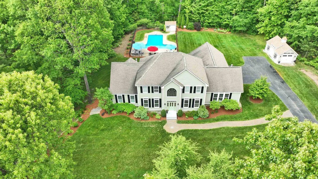 Gorgeous neighborhood, in-ground pool, and a kitchen that could be found on the pages of a magazine, spectacular finished walkout basement - This home in the beautiful town of Auburn has it all. The five-bedroom, four-bathroom Colonial sits far back off the road on nearly three acres, abutting conservation land and walking trails. Inside, you'll find a stunning kitchen remodeled just last year. All eyes will immediately be drawn to the custom hood with brass accents. A 48-inch Thermador commercial range is sure to inspire your inner chef. This kitchen also boasts a convection oven, steam oven, induction cooktop, beverage fridge and more. A sunroom and separate dining room can be found off the kitchen. There is a large living room with cathedral ceilings and gas fireplace. The grand primary suite with gas fireplace is on the first floor and has a newly remodeled bath with tile shower and heated floors. 1300 square feet has been finished in the walkout basement, with incredible kitchen, gym, 3/4 bath, and a media room with built in speakers and theater chairs. Head outside to your large heated in-ground pool. Relax by the firepit with smokeless insert. This home has a whole house generator, irrigation, and a 14x24 Reeds Ferry Shed. Updated Hardie Board Siding & Harvey Windows on the first floor. It is the home everyone will want to hang out at. Schedule a showing today!