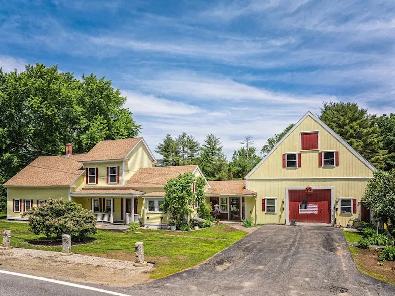 Sturdy, Spacious Farmhouse with Yankee Center Drive Barn on 1.7 Acres Abutting Freese's Pond. This classic c.1842 Deerfield farmhouse offers space, charm, and remarkable flexibility on a picturesque 1.7-acre open, level lot with mature landscaping and direct frontage on serene Freese's Pond. With over 2,300 SF, this rambling home includes 8 first-floor rooms, including a generous eat-in kitchen with walk-in pantry and convenient 1 4 bath, plus 2 3 potential bedrooms ideal for main-level living. A spectacular 25x17 vaulted room with floor-to-ceiling windows overlooks the beautifully landscaped backyard and pond. Once a professional beauty salon, this sun-filled space is ready to become a stunning family room, artist studio, or home business hub. Upstairs, a lofted primary suite overlooks the main living area, and an unfinished second-floor attic accessed via its own staircase offers tremendous potential for future expansion. The barn is a showstopper: full front-to-back drive-through access, spacious second floor haylofts accessed via an enclosed stairwell on one side, drive-in equipment storage "below", and a dreamy studio or workshop space with incredible natural light. Whether you're seeking a spacious single-family retreat, exploring rental or multi-family conversion possibilities, or dreaming of the perfect work-from-home setup, this unique property delivers character, versatility, and a truly special setting. Come have a look at this fabulous farmhouse!