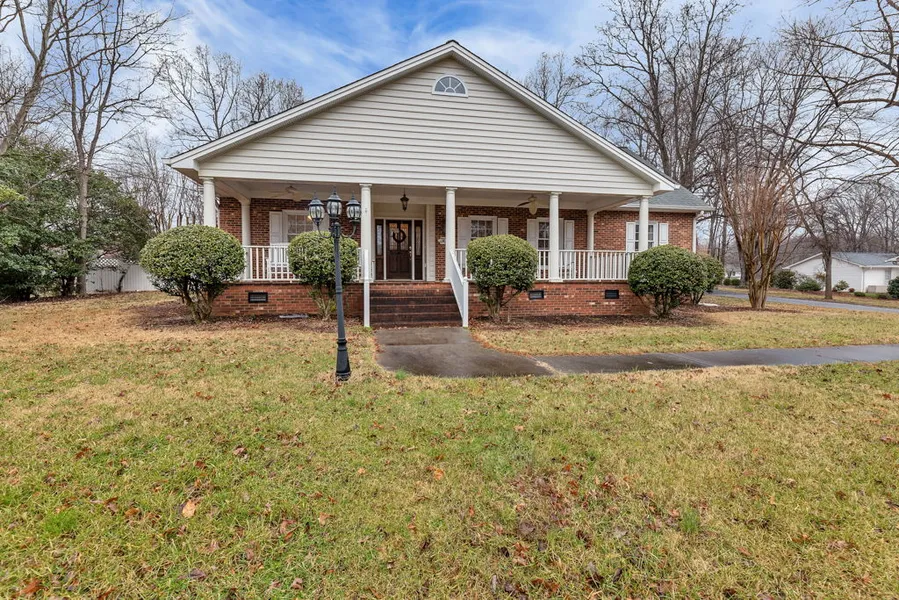 Beautiful traditional house with massive rocking chair front porch, just blocks away from shopping, dining and hospital. Gourmet kitchen with granite countertops, stainless steel appliances, and gas range with convection oven. Large pantry. There are 4 bed, 3 baths w/ 2 beds 2 baths on Main Level. Upstairs you will discover 2 bedrooms 1 bath and a playroom (which could be used as a craft room, or additional office). Hardwood floors. Huge family room & dining room. Tons of storage. Outside there are 2 covered porches & a large patio as well as a storage building. Schedule your private tour of this beautiful home!
