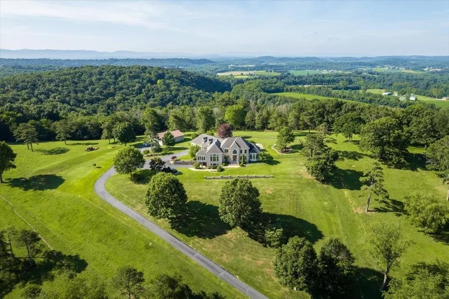 Notre Reve: "The Castle on the Hill - Our Dream." The pinnacle and crowning point of North River. 64 bucolic acres with mesmerizing panoramic views. The best of everything. Superb workmanship and splendid design by Gary Crummett. Preeminent, respected master craftsman is reflected within this well-planned expansive, delightful home. Description is insignificant for the beauty of the land, the views and home. One can stand in the kitchen and see in four different directions-all with a view. Splendid detail throughout and rich traditional color palette. You will find: A gallery, gourmet family kitchen, great room, sunroom, dining, and living, primary suite on main floor, and an office wing, mud room, service kitchen, large laundry suite. Lower walkout level with apartment and full kitchen and great room. The detail and built-in features alone will take your breath away. The pool, veranda, and shade portico to enhance your living. Plethora of storage. Safe room. Solar providing 50% net metering. 3-bay garage/workshop. Potential of more acreage.