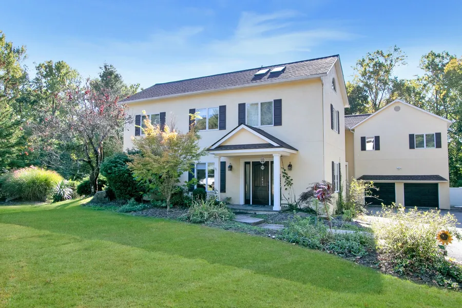 Oversized colonial in sought after Palisades, NY on .96 acres. Just over the NJ border and less than 11 miles from the George Washington Bridge is this custom four bedroom 4,800+ sq ft home on cul-de-sac, with in ground salt water swimming pool and gym with sauna. The main level has two large living and dining areas, open kitchen with stainless steel appliances and family room with sliders onto a large multi tiered deck. Large master bedroom with two walk in closets, huge master bath with shower and jetted tub, large bedroom with en-suite bath, bedroom with deck and spiral staircase to the gym/spa and a second floor family room with fireplace (easily double as fifth bedroom), whole house ozone air purification system and central vac. Homebody or outdoors person, privacy seeker or entertainer? A haven to entertain and relax. There's plenty to do...hiking, biking, boating, cross country sk...