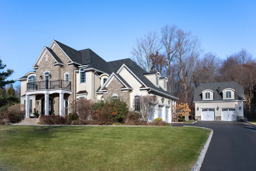 Stunning custom-built luxury home set on nearly an acre in the peaceful hamlet of Palisades, just 12 miles north of NYC. Built in 2010, and for sale by the original owner, this estate-like property with swimming pool is on a quiet dead end road, set apart from neighbors and enveloped by woods. Parking in the attached three-car garage is complemented by an additional freestanding two-car garage with finished office above; perfect for remote work or creative pursuits. The gardens, designed by renowned local landscape architect Daniel Sherman, create a private oasis with mature, flowering trees and beautiful plantings surrounding a heated, salt water gunite pool with hot tub, waterfall and sun shelf for passive heat. The gazebo, equipped with an outdoor kitchen and built-in TV, is the perfect setting for entertaining.