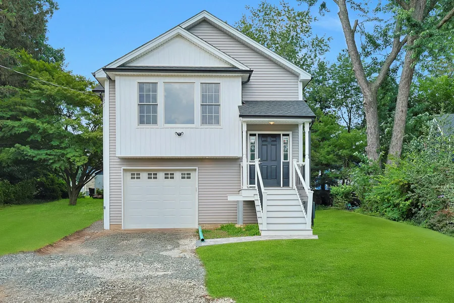 The primary bedroom offers a spacious walk-in closet, while the lower level is designed for entertaining with a family room, an office, and an additional full bathroom. The lower level features stunning tile flooring throughout, offering both durability and a sleek, modern aesthetic that complements the entire space. This level also includes a laundry room with convenient garage access. Sliders in the family room lead out to a tranquil outdoor space, highlighted by two magnificent Japanese maple trees, perfect for enjoying nature. The front entry features trek decking, adding both beauty and functionality to this impressive home.