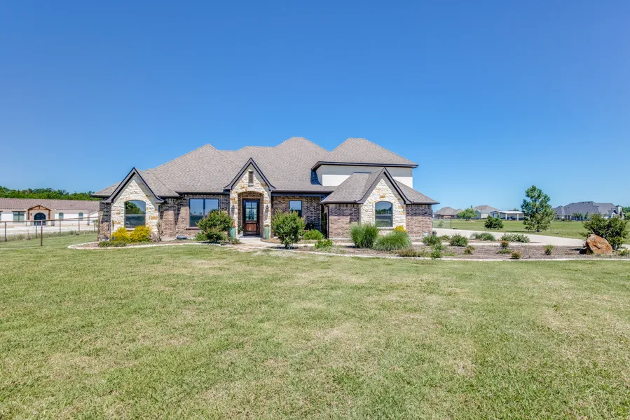 Upscale country living in the best manner...TEXAS style. Short drive to Rockwalls shopping, dining, and Lake Ray Hubbard. Natively landscaped this beautiful 2017 custom home is perched on 4.05 acres with a heavily treed greenbelt. Floor plan: open and inviting, entertain indoors and outdoors, chefs kitchen warmly host family and friends toasting to the good life. In 2019 a X-large shop with 3 drive-in entrances was custom built. 1 of the 3 attached garages is a sound proof recording studio with air conditioner. Community Amenities: private lake for fishing, walking trails and a park. Love Lives Here.