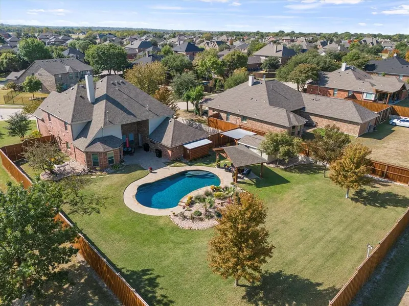 Discover your dream home in this meticulously maintained 5-bedroom, 4-bath brick & stone home, situated on an expansive private lot. Incredible outdoor oasis features a sparkling pool & inviting living areas perfect for relaxation & entertainment. A unique man cave-shop with electricity & workbench adds versatility to the outdoor space, all within walking distance to an excellent elementary school. Step inside to an open floor plan that flows seamlessly throughout. The first floor boasts a luxurious master suite complete with a cozy sitting area, as well as a convenient guest suite for visitors. The chef's dream kitchen is designed for functionality, opening to a sunlit breakfast area, play area, & a family room highlighted by a floor-to-ceiling stone fireplace. Stunning entryway leads to a spacious dining area, ideal for hosting family gatherings & special occasions. Need a workspace? The dedicated office offers the perfect environment for working from home. Entertainment options abound with a massive media room that will delight family & friends, along with a huge game room that can double as a second family room or bonus area. Three additional spacious bedrooms provide roomy closets & easy access to full baths. Additional features include 2-car garage with extended driveway, providing ample parking, spacious laundry room, & abundant storage throughout. Dont miss your chance to own this exceptional home that beautifully blends luxury, comfort, & outdoor living!