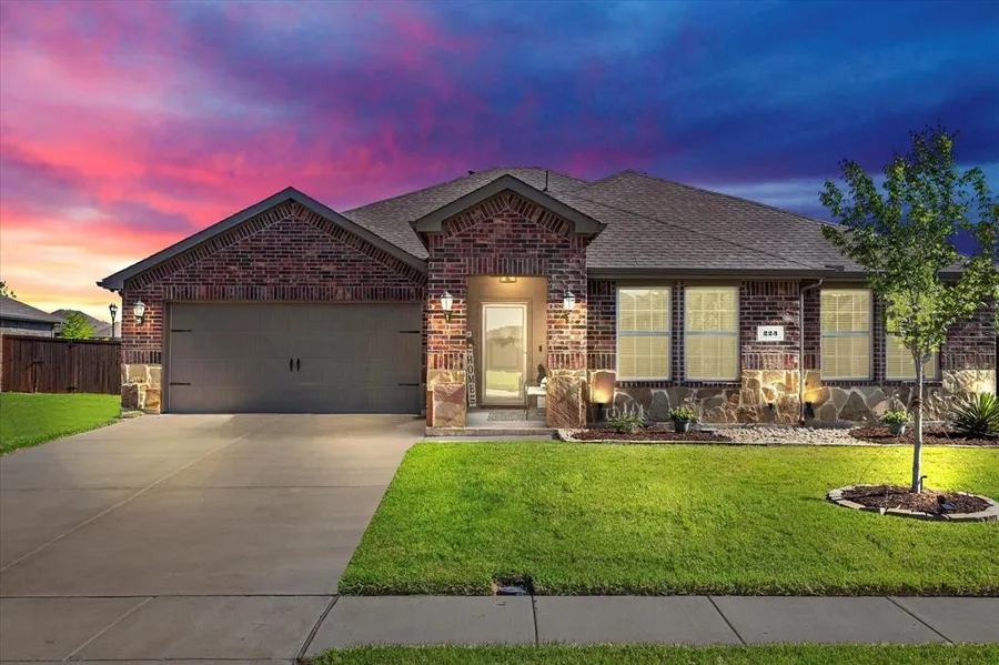 **Spectacular Fate Residence: Modern Elegance with a Natural Backdrop** Nestled in the charming community of Fate, Texas, this stunning 4-bedroom, 2-bathroom home blends contemporary design with the tranquility of nature. Situated on a large lot, this property exudes a *better than new* feel and presents a rare opportunity for those seeking style, comfort, and space. Step inside this beautifully crafted home that showcases an open concept layout, perfect for both everyday living and entertaining. The interior boasts luxurious LVP flooring throughout, complemented by updated lighting fixtures and fans that add a sleek, modern touch. The heart of the home is the gourmet kitchen, featuring sophisticated over and under cabinet lighting, quartz countertops, and large island elevating your culinary experience with both functionality and ambience. Each of the four spacious bedrooms promises comfort, with the primary suite offering a retreat-like experience. Relish in the expansive primary walk-in closet, dual sinks, and a large shower with a bench designed with both practicality and luxury in mind. Additional highlights include decorative tile in the laundry room, adding a unique flair and practicality to the vital workspace. Exterior elegance meets function with the home's stone and brick faade. Step outside and enjoy the expansive covered patio overlooking a well-manicured lawn, providing a serene setting for relaxation or gatherings. The newly epoxy-finished floor in the 2-car garage offers durability and a polished look, showcasing meticulous attention to detail throughout this residence. Seize the opportunity to claim your dream home that truly shows like a model. For those seeking a blend of modern living and natures tranquility, come and experience all that this exceptional property has to offer.