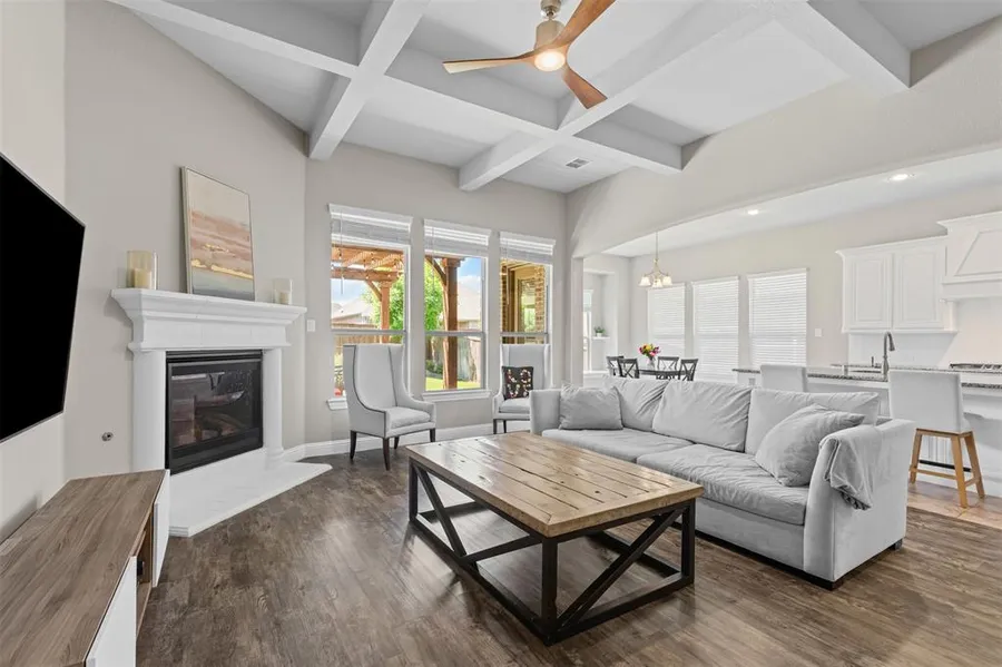 Priced To Sell! Welcome to this inviting ONE STORY located in the sought-after community of Breezy Hill. As you enter into this FOUR BEDROOM home you are greeted with a lovely dining room perfect for large gatherings or can be used as an open office space. Wonderful kitchen layout with an abundance of cabinet and countertop space, large granite island, walk in pantry, gas range and stainless appliances connects to the breakfast room and overlooks large family room with coffered ceilings, LVP flooring, gas fireplace and a wall of windows overlooking inviting green space with outdoor area and beautiful lush landscape perfect for entertaining family & friends. Ample primary bedroom with ensuite bath, dual sinks, separate tub & shower with large WIC. 3 additional bedrooms, separate utility room, hall bath with dual sinks and a half bath complete this relaxing home. Enjoy your summers cooling off at the neighborhood community pool. This home is conveniently located and ready for its new owners! THE STAINLESS REFRIGERATOR IN KITCHEN, WASHER & DRYER AND REFRIGERATOR IN GARAGE WILL CONVEY WITH HOME!