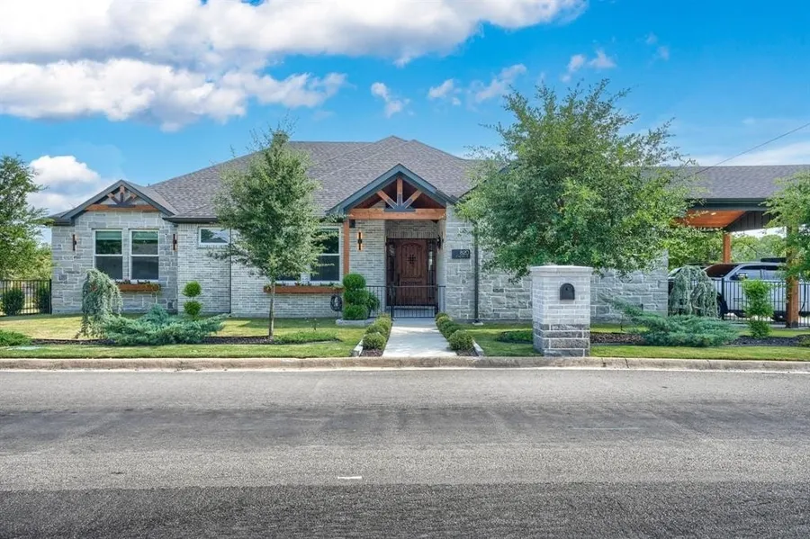 This beautifully crafted residence features soaring high ceilings and an abundance of windows, filling every space with natural light. The heart of the home is the oversized island with striking black natural stone—perfect for gatherings. This home has been meticulously designed with hardwood floors throughout. Offering 3 spacious bedrooms and 2 luxurious baths, the design blends comfort with sophistication. Step outside to the covered patio and manicured landscaping, ideal for entertaining or simply enjoying peaceful Texas evenings. All Furniture is included with an acceptable offer!! Schedule a showing today!!