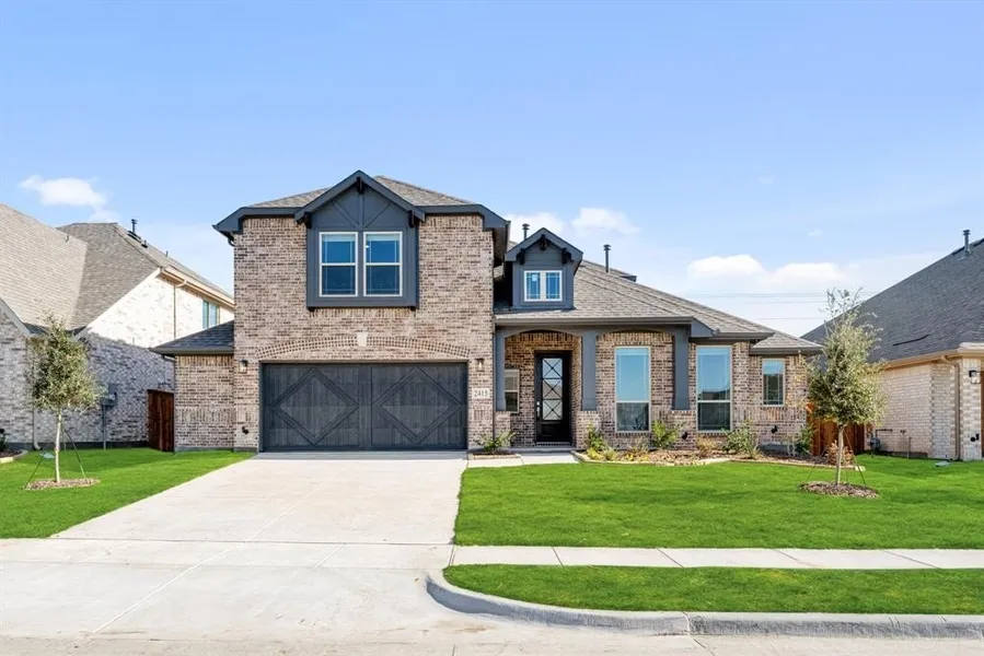 NEW! NEVER LIVED IN, and Ready NOW! The Classic Series Carolina IV is a thoughtfully designed two-story home offering 4 bedrooms, 3 full baths, and a dedicated study—all set on a spacious 7,200 square foot interior lot with charming brick and stone exterior and cedar garage doors. The home features a 2.5-car garage and a striking rotunda entry that opens to a formal dining area and private study with walk-in closet, ideal for working from home or accommodating guests. The heart of the home is the expansive family room with a floor-to-ceiling tile fireplace and direct vent, seamlessly connected to a deluxe open kitchen boasting custom cabinetry, a large center island, and Quartz countertops. Enjoy effortless indoor-outdoor living with the extended covered patio with gas stub, perfect for grilling and entertaining. The secluded first-floor primary suite offers a relaxing retreat with a spa-like bath featuring a garden tub, separate shower, dual sinks, and a spacious walk-in closet. Upstairs, you’ll find a large game room, media room, and private 4th bedroom with full bath, ideal for multigenerational living or hosting visitors. Additional highlights include wood-look tile flooring, gas cooktop, and full landscaping with upgraded front landscaping package. Contact us or visit our model home in Rockwall at Sonoma Verde for more details on this beautiful and well-appointed home!