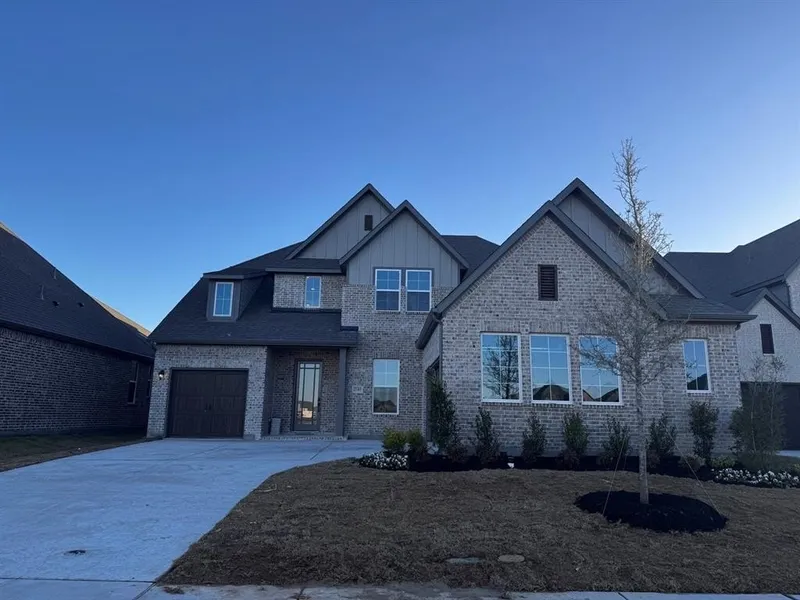 MLS# 21134922 - Built by RockWell Homes - Dec 2025 completion! ~ New Edward home plan offers an expansive and luxurious design with 4 bedrooms, 4 bathrooms, a study, media room, gameroom, and a three-car garage. The striking exterior combines full brick, metal roof details, 8 ft doors and stylish wood garage doors. Upon entering, you'll be greeted by a grand foyer with soaring ceilings and an elegant open metail stair rail staircase, flanked by a study and a media room. The kitchen is a chef's delight, featuring a butler's pantry and a spacious walk-in storage pantry. It includes solid surface countertops, an undermount sink, a ceramic tile backsplash, and GE stainless steel appliances, such as a built-in oven, gas cooktop, and custom cabinet vent hood. Additional amenities include a dishwasher, upgraded flooring, recessed can lighting, Delta faucets, and 42-inch cabinets. The family room, designed with an oversized sliding glass door, offers views of the private backyard, enhancing the home's sense of space and light. The primary suite, located at the back of the home for added privacy, boasts dual vanity sinks, ceramic tile flooring, a ceramic tile shower with a semi-frameless glass enclosure, a free-standing garden tub, a lighting package, a walk-in closet, and a linen closet. Additionally, a second bedroom on the first floor features a private ensuite bath. Upstairs, the secondary bedrooms each come with ensuite bathrooms and oversized walk-in closets. The gameroom on this level is perfect for entertaining or as a second living area. This home also includes a fully fenced private backyard, a full sprinkler system, full gutters, energy-efficient HVAC, a landscaping package, garage door openers, dual-pane energy-efficient windows, and a covered patio, all wrapped in a full brick exterior for durability and style. Enjoy quick access to Rockwall ISD schools, I30, I635, I20, I80, PGBT161, Lake Ray Hubbard, Downtown Dallas, shopping & dining.