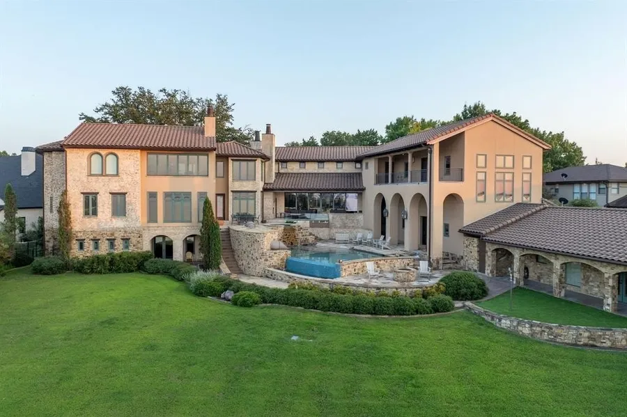 Welcome to 8 Meadowlake, an extraordinary Mediterranean-inspired estate nestled along the pristine shores of Lake Ray Hubbard in the exclusive enclave of Heath, Texas. This grand waterfront residence blends timeless architecture with resort-style amenities and breathtaking indoor-outdoor living, including stone exteriors, tiled rooflines, arched colonnades, and meticulous landscaping set the tone for refined lakefront living. The backyard features a dramatic multi-level pool with a waterfall, dual water slides, and a heated spa all overlooking the serene waters of the lake. Inside, the home is a showcase of artisan craftsmanship and luxury finishes. A sweeping wrought-iron spiral staircase anchors the interior, accented by natural stone walls, rich hardwood floors, and hand-carved wood trim. The living area boasts soaring ceilings with exposed beams, ambient lighting, and a commanding st...