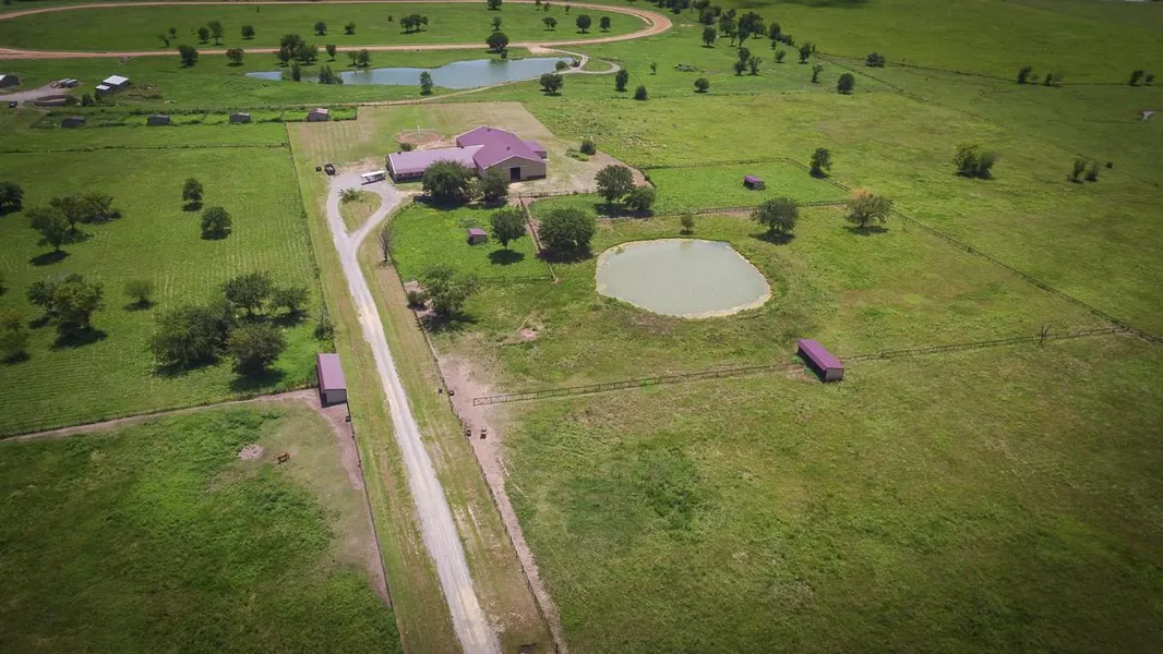 Recently constructed horse facilities w/14 stalls & living quarters. Features: Tack& feed rm, wash racks, indoor riding arena attached to horse barn, horse walker, 8 steel pen traps, 7 grass paddocks, hay meadow & pond. Contiguous to horse racing track.
