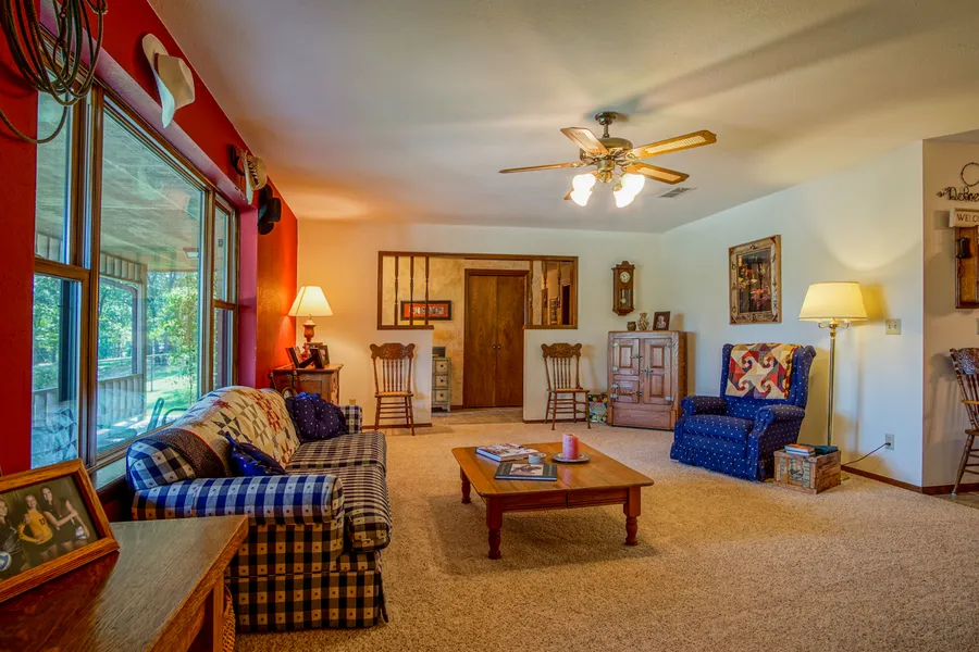 One of a kind place to call home! Beautiful 18 acres w/ pipe fencing situated on Claremore Lake. 2300+ sf home with 3 beds, 2 baths, 2 living areas, large kitchen and 2 car attached garage. 3 year old insulated windows, doors and heat pump. 24x36 shop/barn with 10' overhead door, 15x36 loafing shed on back of shop, scattered mature trees and in the Sequoyah School District. Just sit back on your front porch and enjoy the view of Claremore Lake.