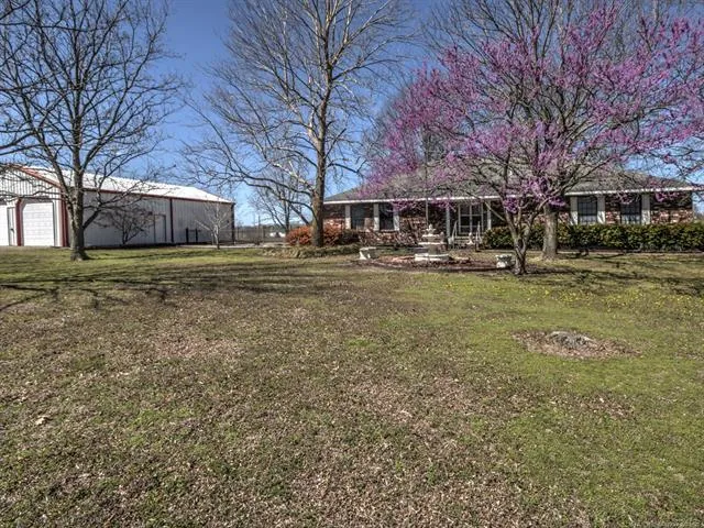 10 acres with insulated metal 32x50 m/l shop w/bathroom, 220v & heat. 60x45 m/l barn, 12x20 m/l shop. Solid custom, full brick 1 owner home. Updates include septic tank, HVAC & roof. Move right in & update interior at your leisure. Oologah Lake is just a couple miles away! Commercial potential. This is a rare gem. Must see to appreciate.