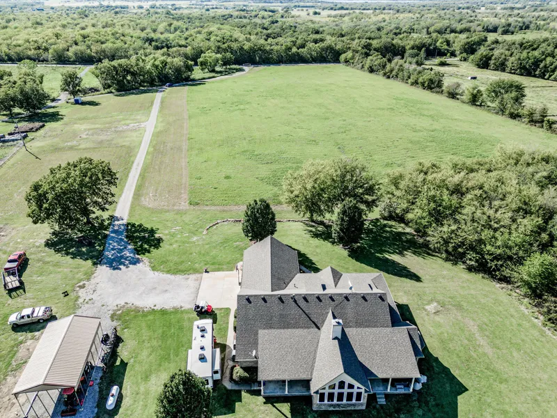 Just 2.2 miles from Spencer Creek Campground on Oologah Lake sits this beautiful 3 bedroom 2 bath custom home on 20 acres. This home offers 3,197 square feet of living space plus a 973 square feet attached 3 car garage totaling 4,170 square feet. This amazing custom ranch house was built in 2006 and offers 3 bedrooms, 2 full baths, and an office room with a closet that could be used as a 4th bedroom. The open-concept living/dining area has room to accommodate large family gatherings. The living area features vaulted ceilings and a see-through fireplace that is also accessible in the game room/second living area with large windows to view the sunrise. The kitchen is spacious and features custom maple cabinets, a pantry, granite countertops, an island with a double sink, a dishwasher, and snack bar seating. The oversize master bedroom and bathroom offer lots of room for 2. The front porch ...