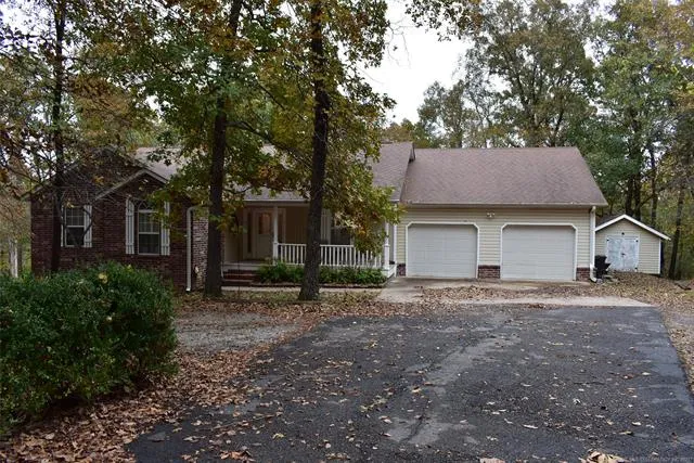 Charming home on Wooded Acre. This 3 bedroom, 2 bath home features wood floors in all rooms except bedrooms, spacious living room with vaulted ceiling and wood burning stove, large master suite with walk in closet and full bath. patio doors access deck, kitchen has lots of counter & cabinet space, large laundry room with sink and pantry. The large deck over looks the wooded back yard with fenced yard. Beautiful setting on dead end Rd and approx. 3 miles from Blue Creek Recreational area on Oologah Lake.