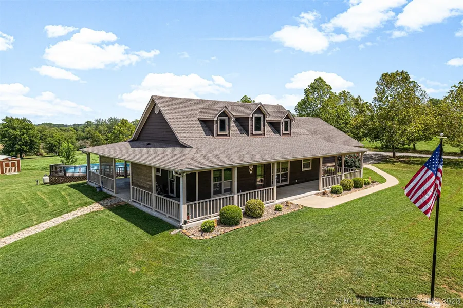 Welcome to your own piece of paradise on 20 acres! This home was very thoughtfully planned out and provides all the comfort and security you could need. This beautiful, one-owner custom home features a split floor plan, with an open living room and kitchen. Drive down the treed driveway as you are welcomed by a covered porch that wraps around three sides of the home, with storm doors leading in/out of each bedroom. Cool off in the above-ground pool after an evening walk down the walking trails around the property. Bring your horses, cattle, or run a farm. There is a large shop with a carport and 2 - 30AMP RV hookups. There is also a newer storage shed with electric. The home has a whole home generator, so you don't have to worry about power outages. The options are endless with this property! Some areas of the land are mowed for hay and there are also treed areas, with plenty of mature trees of every kind. Located between Foyil and Chelsea. It's just a 15 minute drive to Claremore. Get your showing scheduled today and come take a look at this amazing property!