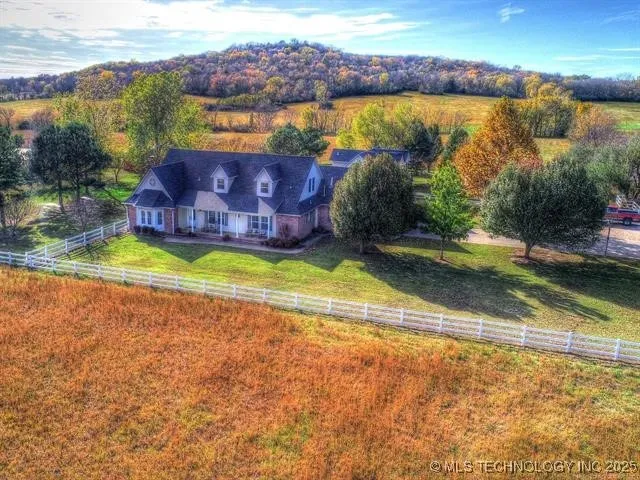 NOW 15.75 ACRES +/-, COMPLETE RE-MODEL, MOTIVATED SELLERS! Find the peaceful serenity you have wished for at Star Hill. This idyllic property is a true destination home for those searching for abundant space & private living. L shaped floorplan home wraps around the 2024 installed shimmering blue gunite pool. Heated & chilled saltwater pool offers near year ‘round enjoyment & a tanning shelf with umbrella. Huge covered patio for dining/entertaining & deck space. Large front porch. Newly installed front door welcomes visitors. Upon entry to the left is a large living room with fireplace. To the right, is the formal dining room with fireplace. Beyond is the newly re-modeled island kitchen, quartz countertops, new tile backsplash, 2 dishwashers, microwave in the island, & new double wall ovens & walk-in pantry. The main floor primary suite: bedroom & walk in closet are spacious & well-lit. Primary bath has Japanese soaking tub, oversized shower, backlit vanity mirrors, stunning tile on floors & wall, & a private commode. Main floor also offers a 2nd primary bedroom (current study) with beautifully re-modeled private bath & a private entrance outside. Large gameroom on the 1st level, as well as a sunroom with pool views. Home has 2 staircases. Each has its’ own dedicated upstairs space; in other words, the upstairs is separated. East side upstairs offers 2 large bedrooms, full bath, plus a very large living space that may also be used as a bedroom. North side upstairs offers 2 bedrooms & a full bath. One room is also plumbed for a small kitchen/wet bar. Many more amenities outside on the land! Fully fenced, plus cross-fenced, bring your animals to Star Hill. A 30X30 Barn, 36X36 Shop, Chicken Coop 30X8, Loafing Shed 30X9 & a stocked fishing pond 200X80. 2-car garage with storm shelter, plus an in-ground storm shelter. Garden area with water line & a fire pit.