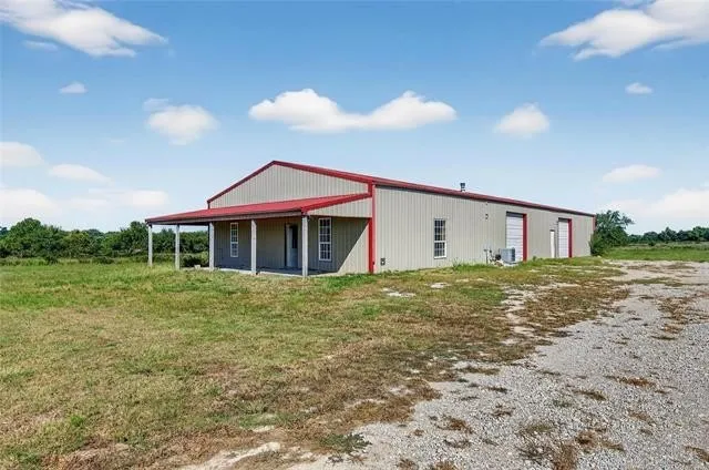 The barndominium blends comfortable living with practical design. Two bedrooms, two baths, and a vaulted living area give the home a modern yet rustic feel, accented with details like a log accent wall and durable finishes that stand up to everyday life. The covered porch out front is the kind of place you’ll want to end your evenings, with nothing but the sound of the wind through the grass.