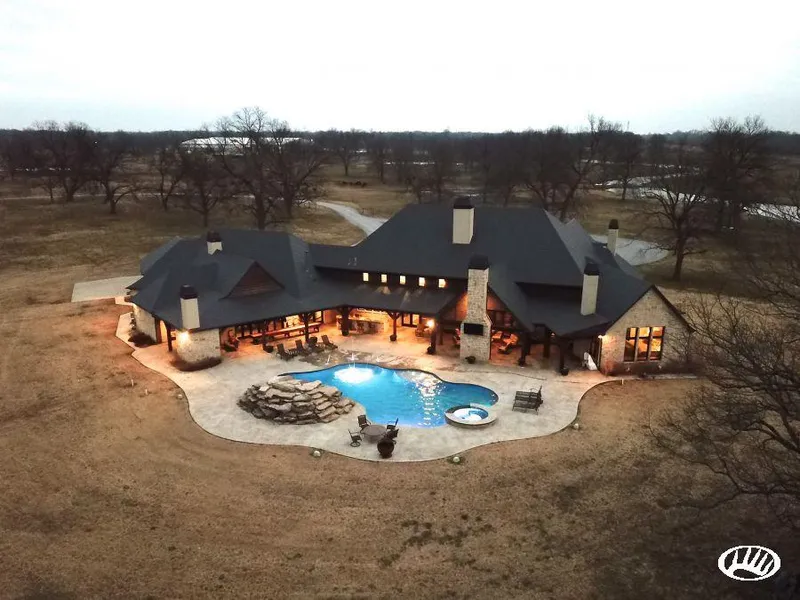 Welcome to this amazing 8,000 sq. ft. custom home with soaring beamed ceilings, hand scraped hardwood and flagstone floors, natural stone walls, and two 18 ft. bifold doors leading onto the 3,000 sq. ft. wrap around covered porch. The kitchen features appliances from DCS by Fisher & Paykel and WOLF along with an abundance of cabinets, a large granite island, and an oversized stainless farmhouse sink overlooking the pool area. The master bedroom has a private mud room complete with washer and dryer hook-ups, built-in storage, and a private entrance. His and her closets are part of the master en-suite and the bedroom contains a wood burning fireplace, access to the patio, and self-closing doors. Three of the four guest rooms have private baths, walk-in closets and private loft space. The fifth bedroom is off the game room and has access to the hall bath with washer and dryer hookups. There is a theater room complete with ten chairs in stadium seating with a 170 inch Stewart screen. Other indoor amenities include a game room with a kitchenette, a wine room with a dual temperature refrigerator, an oversized utility/hobby/laundry room, a hidden safe room, and a large bonus room above the garage. A relaxing entertainment area is out back with an outdoor kitchen, two wood burning fireplaces and retractable remote control outdoor screens to make a screened in porch. The in-ground heated saltwater pool creates a soothing escape with the waterfall ledge, 3 Laminar jet fountains and bubblers on the sun shelf. The entire home is controlled by a SmartHome Control 4 system with built-in wall panels and phone connectivity. This system gives the user control of the TV’s and sound system (inside and outside), thermostats of the four Geothermal units, alarm system, five garage doors, deadbolts, security cameras, and lighting. The TAMKO Metal Works steel shingles on the room have a 50-year warranty and a 100-year life expectancy. The 60 KVA propane Generac generator can control the whole house if needed. Along with the amazing home, there is a 100’ x 40’ fully insulated shop with 8”-12” concrete floors compatible with storing heavy equipment. There are four 16’ garage doors and a 10,000 lb lift. Near to the shop is a covered storage facility with 14 bays and RV storage with electricity. The land consists primarily of pasture with ponds and joins the Corp land next to the Verdigris River which offers great hunting.