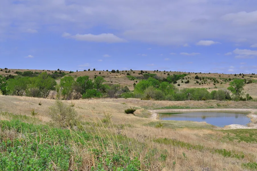 Very few areas of the State can boast the trophy whitetail history of the area this farm is located between the Saline River and Paradise Creek in Northwest Kansas. This area within the Smoky Hills region of Kansas has recently produced Boone & Crockett caliber whitetail deer on an annual basis and this property has the right recipe to produce and hold giant whitetail deer. Surrounded by large contiguous ranches, this property has great seclusion and excellent cover and terrain to hold a thriving population of deer and turkeys. There are multiple water sources on the farm including 3 ponds, a year-round live spring, and a water well. Food plot sites have been created in the fertile soils throughout the bottomland – strategically positioned along the edge of the mature cottonwood grove running North to South. The plots are advantageously situated to be hunted with setups for all wind directions. Treestand locations in the towering mature cottonwoods would allow an incredible view of the deer funneling to the plots every evening from the deep timbered canyons to the West. This farm has a little bit of everything with incredible cover, water, and food sources along with very diverse terrain, character, and scenic views. Don’t miss out on this opportunity to purchase an incredible hunting farm at a great price!